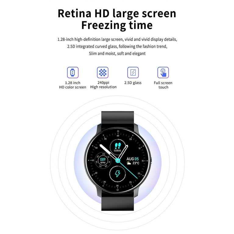 Smart Watch Fitness Tracker Full Round 1 28inch Touch Screen With 24hrs Monitor Pedometer Ip67 Waterproof Sport For Andriod Ios Phone Black Walmart Com